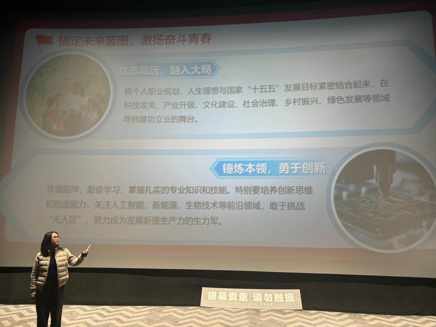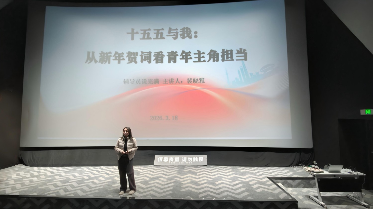 为引导青年学生深刻理解“十五五”规划的时代内涵,明确自身在国家发展中的主角定位,3月18日15:00,商务英语学院2023级普本辅导员裴晓雅老师于万画影城2号影厅开展了以“‘十五五’与我:从新年贺词看青年主角担当”为主题的年级会。