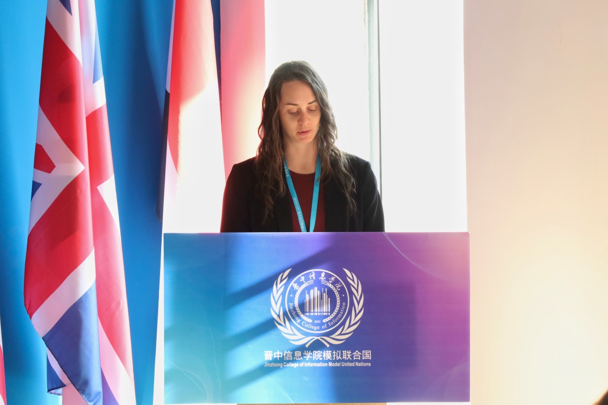 英语2502班以“难民与流离失所者的保护”为核心议题展开模拟联合国活动,本次活动特别邀请外教老师亲临现场、全程参与指导。来自不同国家的代表齐聚一堂,围绕难民安置、人道救援、权益保障、区域协同互助等现实问题展开深入讨论与理性辩论。