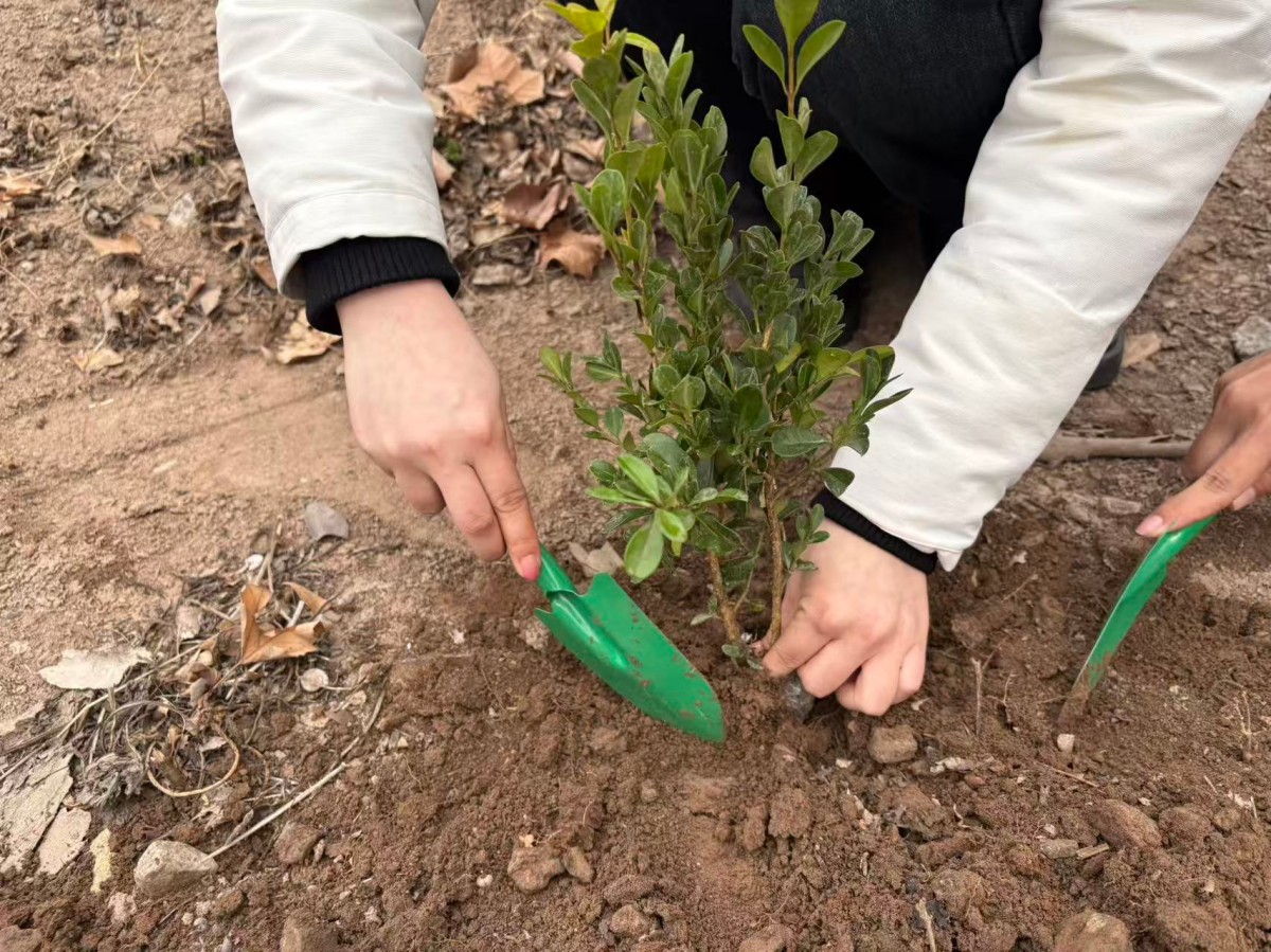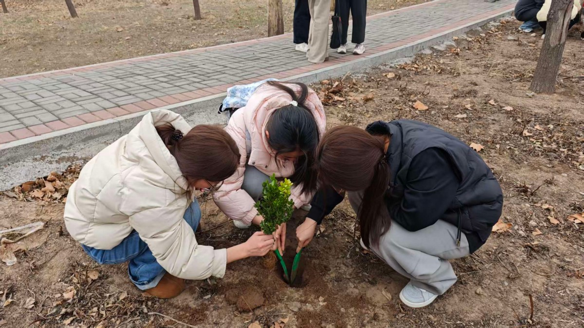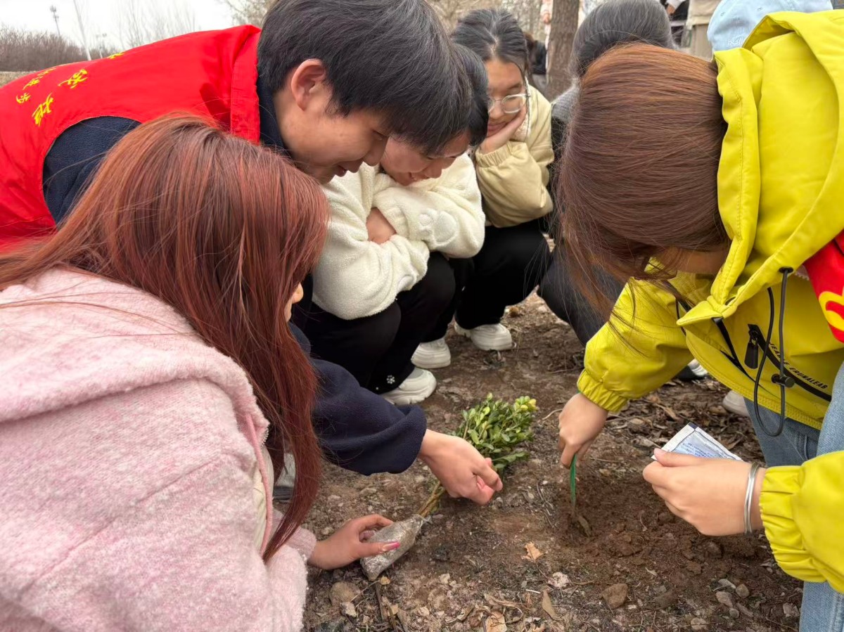 3月17日,英语2505班在体育公园开展“青春植绿,不负春光”主题活动。同学们热情高涨、分工明确,扶苗、填土、浇水,每一个步骤都认真细致,在亲身劳动中亲近自然、感受自然,将绿色发展理念落到实处。此次活动将班级建设与生态文明教育有机结合,既让大家在协作中凝聚班级力量,也在劳动中强化责任与担当。同学们以青春之力浇灌新绿,用实际行动守护环境,以昂扬姿态不负春光、不负韶华,彰显了新时代青年的朝气与使命感。