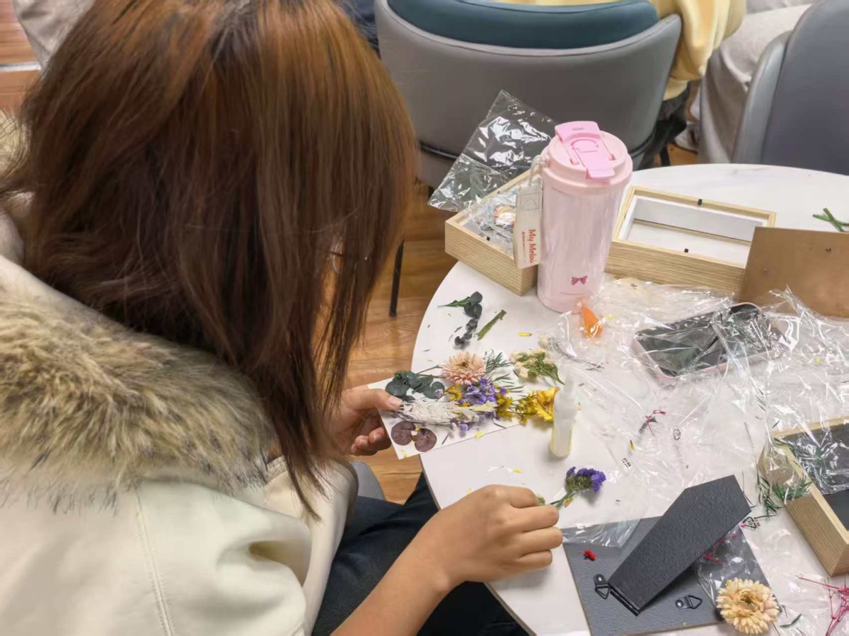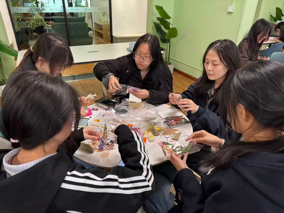 3月19日,英语2501班在青藤书院101青藤·共享厅开展“以花为笺,定格青春”干花相框制作活动。同学们以花为媒、以手为桥,精心挑选花材、认真构思布局、协作粘贴装饰,将春日的浪漫与美好一一封存在方寸相框之间。制作过程中,大家互相帮助、互享灵感,耐心调整层次与疏密,在反复打磨中体会创作的乐趣与匠心。这不仅是一场审美与动手能力的提升,更是一次温暖治愈的班级相聚。活动定格了春日花影,珍藏了青春情谊,让班级在温暖相伴中愈发团结向上。