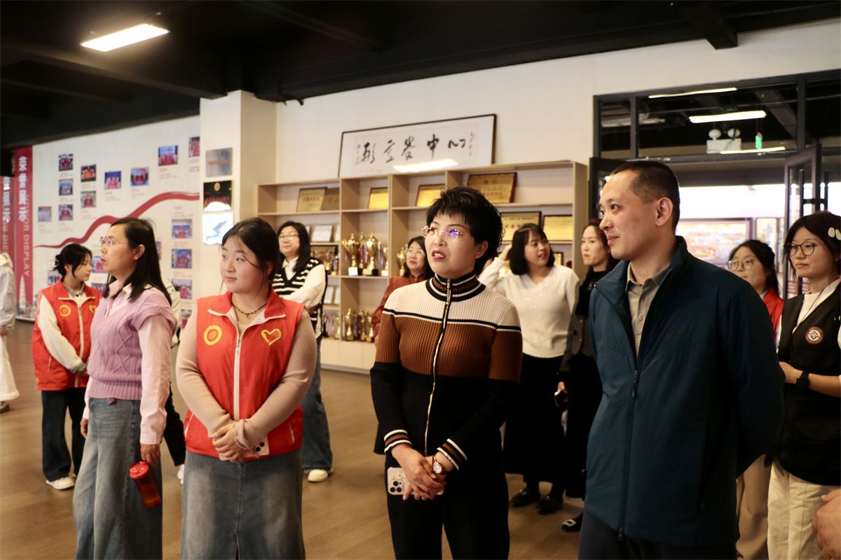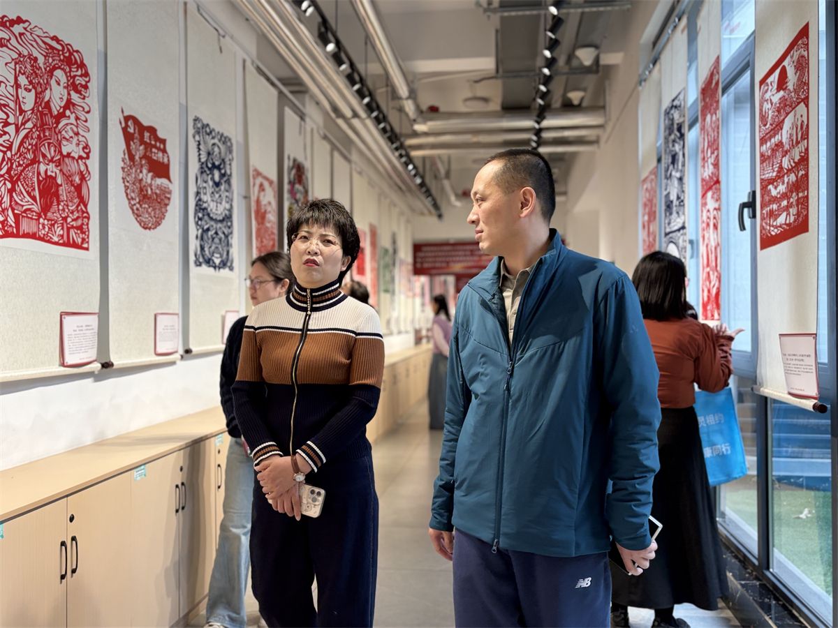 春意盎然之际,学工院长梁瑶福陪同石雪芬书记一行考察校园特色阵地,实地探访文化传承与育人实践成果,亲身感受深厚校园文化底蕴与暖心服务彰显的匠心。在非遗馆,石雪芬书记驻足细看一件件精工剪纸、传统民俗佳作,细细聆听晋中本土非遗的传承故事,感受凝结其中的匠人智慧与岁月风华,馆内兼具非遗手作与传统武术文化展示,留学生修习传承形意拳的风采,亦生动呈现出中华优秀文化中外交融、代代相传的鲜活氛围。对学校深耕传统文化传承沃土、将非遗文化深度融入育人体系的做法频频赞许,并对学校以文铸魂、以艺润心,厚植青年文化自信、守护本土文脉生生不息的责任担当深表认同。
