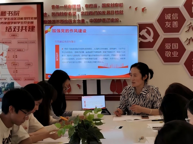 为深入贯彻落实党的作风建设要求,进一步增强党员的党性修养和责任意识,商务英语学院学生党支部于5月28日在青藤书院党建会议室举办“筑牢作风之基,砥砺奋进新征程”主题党日活动。