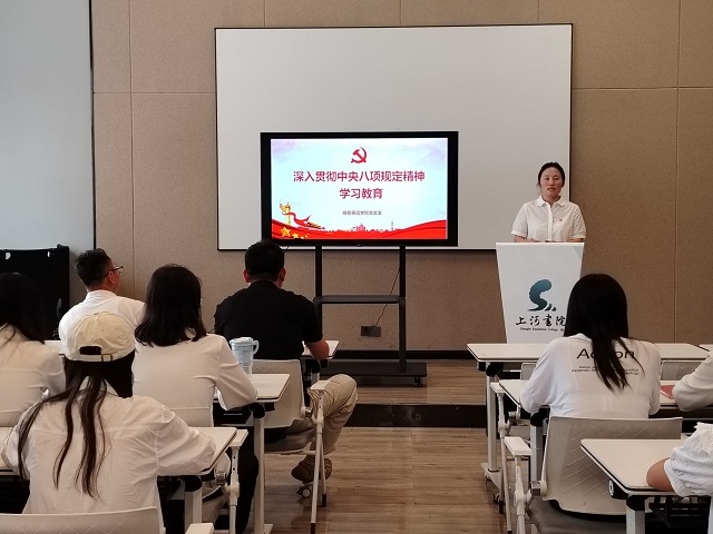 为进一步强化党员的身份意识和责任意识,激励毕业生党员不忘初心、牢记使命,在新的人生征程中继续发挥先锋模范作用,6月18日,商务英语学院学生党支部在上河书院207开展以“颂党恩·话毕业·启新程”为主题的党日活动。支部党员共同进行中央八项规定精神学习教育,为毕业生党员系好离校前“思想纽扣”,拧紧理想信念“总开关”,引导他们以昂扬姿态投身社会建设浪潮。